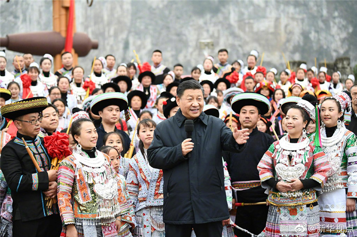 春節前夕,習近平總書(shū)記赴貴州考察調研并看望慰問(wèn)基層干部群眾。3日下午,他來(lái)到畢節市黔西縣,實(shí)地察看烏江六沖河段生態(tài)環(huán)境,走進(jìn)新仁苗族鄉化屋村看望鄉親們。在村文化廣場(chǎng),習近平同參加少數民族春節民俗活動(dòng)的群眾親切交流,并向全國各族人民致以新春祝福。