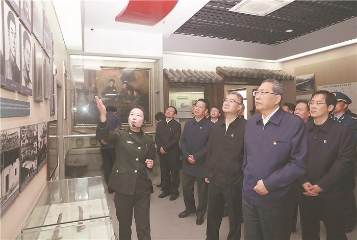 隨后,大家來(lái)到金寨縣紅軍紀念堂和革命博物館,重溫革命戰爭的崢嶸歲月。一件件革命文物,一份份珍貴史料,一個(gè)個(gè)紅色故事,再現了“一寸山河一寸血,一抔熱土一抔魂”的光榮歷史。李錦斌、王清憲、張昌爾等不時(shí)駐足、久久凝視,深情緬懷革命先輩的豐功偉績(jì)??吹礁锩鼞馉幹械胤近h組織作出“救濟貧苦百姓,安定群眾生活”的決議內容,李錦斌飽含深情地說(shuō),這就是堅持以人民為中心的生動(dòng)體現,這就是我們黨的初心,不論到什么時(shí)候,我們都不能忘記。他指出,要牢記習近平總書(shū)記諄諄囑托,進(jìn)一步加強革命傳統教育,大力弘揚大別山精神、新四軍精神、渡江精神、小崗精神等,讓紅色基因滲進(jìn)血液、浸入心扉,轉化為不忘初心、牢記使命、永遠奮斗的強大精神動(dòng)力。