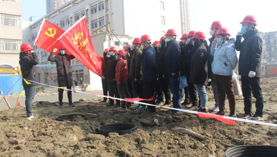 2月1日,施工機械就位,現場(chǎng)建筑物拆除,進(jìn)行場(chǎng)地平整,施工主干道鋪設完成。成立黨員突擊隊,帶頭攻堅克難。即時(shí)召開(kāi)誓師大會(huì ),黨總支書(shū)記王錕領(lǐng)誓:全力以赴,保證安全、保證質(zhì)量、保證工期,堅決完成建設任務(wù)。