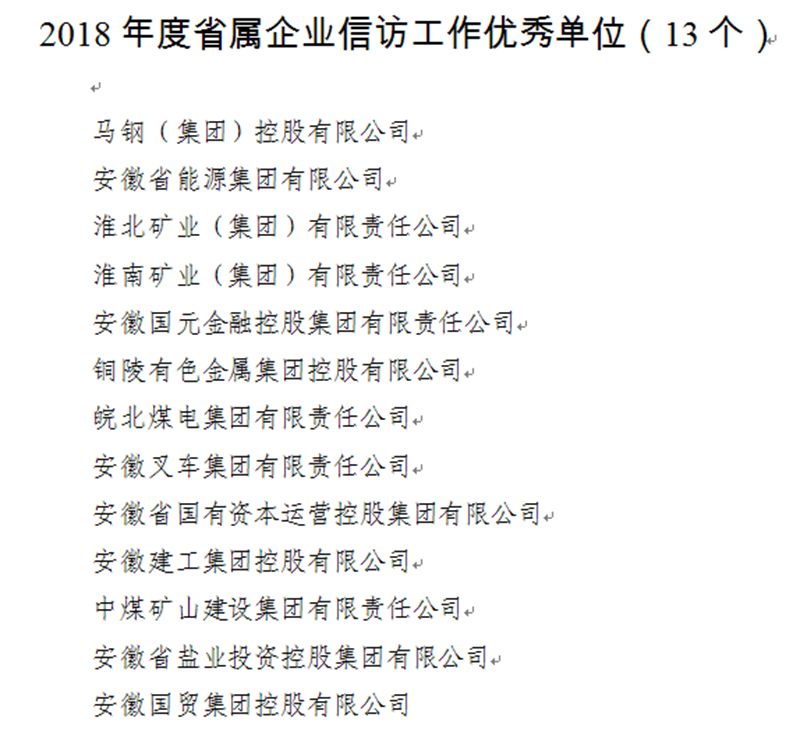 安徽建工集團控股有限公司榮獲《2018年度省屬企業(yè)信訪(fǎng)工作優(yōu)秀單位》榮譽(yù)稱(chēng)號