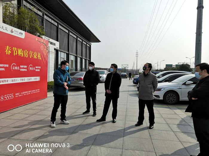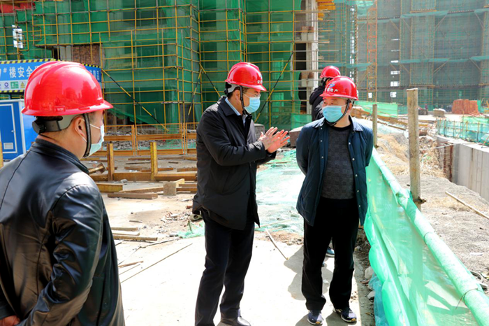 安建地產(chǎn)·翰林天筑項目位于瑤海區新安江路與大眾路交口東北角,是安建地產(chǎn)重點(diǎn)在建項目之一。疫情發(fā)生后,安建地產(chǎn)黨委書(shū)記、董事長(cháng)童宗勝、黨委委員、總經(jīng)理楊海飛、紀委書(shū)記王緒徽多次電話(huà)安排布置相關(guān)防疫工作。2月25日,王緒徽親赴現場(chǎng)指導防疫及恢復生產(chǎn)工作。3月3日,楊海飛一行赴項目調研指導疫情防控和復工復產(chǎn)工作。