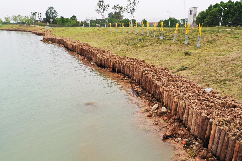 疫情期間,跟蹤監測人員恢復破壞監測點(diǎn)42處,新增加密監測點(diǎn)68處,對人民路塌陷段、一號島西南區域、三號島區域等7處重點(diǎn)區域加密監測5次,完成回填區月度監測3次,岸坡巡回踏勘50余次。養護人員對一期東區、人民路塌陷路段以及創(chuàng )新大道以北區域沖刷嚴重岸坡進(jìn)行沖溝維修、撒草籽護坡、綠植護坡以及木樁防護護坡,累計完成7公里岸坡維護。