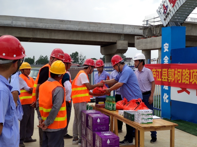 項目積極組織開(kāi)展“消除事故隱患,筑牢安全防線(xiàn)”主題安全月活動(dòng),組織員工和一線(xiàn)作業(yè)人員觀(guān)看安全微電影,學(xué)習安全防護常識,提高安全防護意識。結合項目實(shí)際開(kāi)展交通傷害應急演練,帶領(lǐng)一線(xiàn)作業(yè)人員學(xué)習交通傷害后的應急操作,提高一線(xiàn)作業(yè)人員應急知識儲備,提高應急處置能力。高溫天氣來(lái)襲,項目每天向一線(xiàn)作業(yè)人員發(fā)放十滴水、藿香正氣液等防暑降溫藥品和綠豆、白糖、礦泉水等防暑降溫物資,保障安全生產(chǎn),為大干快上保駕護航。
