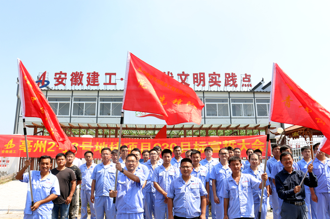 當天,驕陽(yáng)似火。亳州2號3號地塊項目經(jīng)理史冠蘭莊重地給黨員們授予“黨員先鋒隊”“黨員突擊隊”紅旗,給青年突擊隊員們授予“青年突擊隊”紅旗,給工人們授予了“工人突擊隊”紅旗,并提出了四點(diǎn)要求:一是要緊緊圍繞2號地塊930目標任務(wù)開(kāi)展突擊活動(dòng)。全體黨員干部、青年同志和工人先鋒要充分發(fā)揚不怕吃苦、勇于負重,敢打硬仗、能打硬仗的優(yōu)良傳統,切實(shí)發(fā)揮“黨員先鋒隊”“黨員突擊隊”“青年突擊隊”和“工人先鋒隊”,在“急、難、險、重”任務(wù)中的生力軍作用。二是要把搶工大干與錘煉黨員意志相結合。黨員干部、青年同志和工人同志們要充分發(fā)揮模范帶頭作用,深入項目一線(xiàn),以身作則爭搶工期。要在此次搶工大干中拓展本領(lǐng)、錘煉意志、增強黨性。三是要把搶工大干與勞動(dòng)競賽充分結合,把勞動(dòng)競賽的重拳落在工程進(jìn)度上。四是要充分發(fā)揮“黨建帶工建團建”作用?!包h員先鋒隊”要引導好“青年突擊隊”“工人突擊隊”開(kāi)展好突擊任務(wù),黨員干部與青年、工人同志們要相互關(guān)心,密切配合,充分發(fā)揮整體功能和團隊精神,確保完成2號地塊九月底主車(chē)道具備通車(chē)條件的“930”目標任務(wù)。