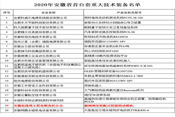 923日,省經(jīng)信廳正式公布2020年安徽省首臺套重大技術(shù)裝備認定名單,安徽省路港工程有限責任公司申報的“船閘閘室裝配式智能移動(dòng)模機”(以下簡(jiǎn)稱(chēng)“船閘移動(dòng)模機”)產(chǎn)品成功入選。
