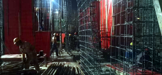 為加快施工生產(chǎn)進(jìn)度,項目部領(lǐng)導及管理人員、作業(yè)單位放棄休息日,發(fā)揚“白加黑”的苦干實(shí)干精神,加班加點(diǎn),堅守崗位??朔N種困難,戰勝多種不利因素,積極推進(jìn)施工進(jìn)度。項目部要求作業(yè)單位優(yōu)化施工組織,通過(guò)增大工作面、增加施工班組等多種措施,加快施工進(jìn)度。同時(shí),為保證夜間施工順利進(jìn)行,項目在符合環(huán)保部門(mén)要求的條件下,項目領(lǐng)導帶領(lǐng)一線(xiàn)管理人員實(shí)施夜間值班制度,每天由值班經(jīng)理帶頭,項目安全員、質(zhì)量員及棟號長(cháng)配合夜間施工生產(chǎn)管理。