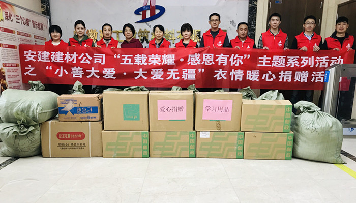 為彰顯企業(yè)社會(huì )責任感,傳遞社會(huì )正能量,近期安建建材開(kāi)展了“五載榮耀•感恩有你”主題系列活動(dòng)之第四屆“小善大愛(ài)·大愛(ài)無(wú)疆”衣情暖心捐贈活動(dòng)。