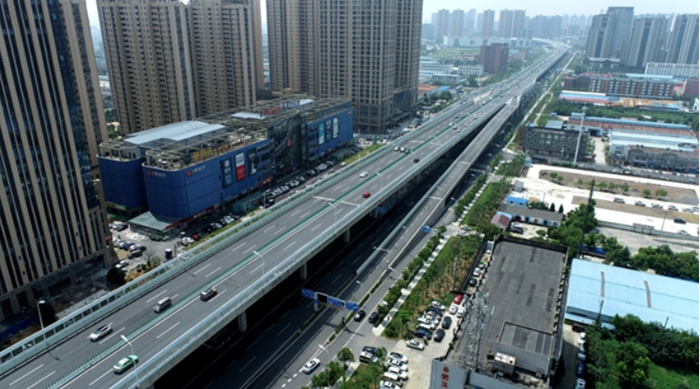 合肥市阜陽(yáng)北路高架工程,是合肥市迄今為止最長(cháng)的高架,是聯(lián)系合肥主城區與北部新城的快速路,被譽(yù)為“合肥北向第一路”“廬州北翼第一橋”。項目南起東方大道,北至北外環(huán)高速,道路全長(cháng)7.02公里,建設投資22.48億元。