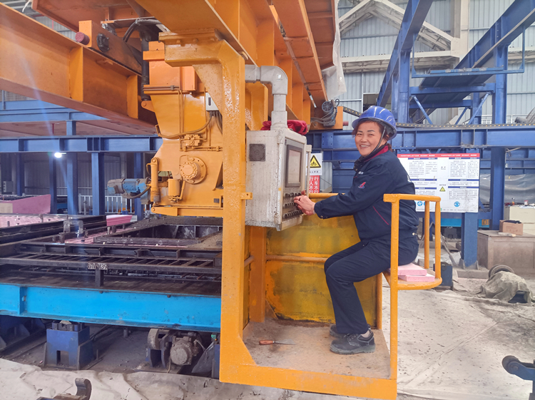 北城工業(yè)公司養護窯中央控制室操作員黃霜正在使用碼垛車(chē)進(jìn)行構件存取操作