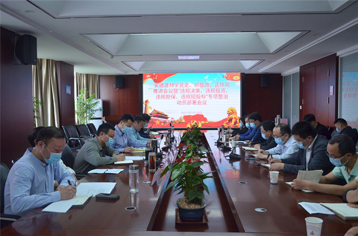 5月18日,安建建材黨委召開(kāi)學(xué)黨史、抓整改、正作風(fēng)推進(jìn)會(huì )議暨“違規決策、違規投資、違規擔保、違規招投標”專(zhuān)項整治動(dòng)員部署會(huì )議,傳達學(xué)習了集團相關(guān)會(huì )議精神、公司“四個(gè)專(zhuān)項整治”工作方案和有關(guān)工作機構人員組成的通知,部署開(kāi)展“四個(gè)專(zhuān)項整治”工作。安建建材黨委書(shū)記、董事長(cháng)張鍵出席會(huì )議并講話(huà),黨委副書(shū)記、董事、工會(huì )主席胡運春主持會(huì )議。