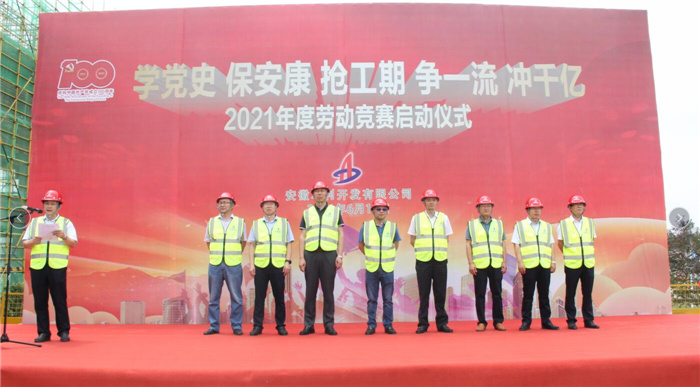 6月16日上午,安徽水利2021年“學(xué)黨史、保安康、搶工期、爭一流、沖千億”勞動(dòng)競賽啟動(dòng)儀式,在安徽水利城建公司上海(蚌埠)微電子科技園項目施工現場(chǎng)舉行。安徽水利黨委書(shū)記、董事長(cháng)張曉林出席啟動(dòng)儀式,并宣布勞動(dòng)競賽正式啟動(dòng)。