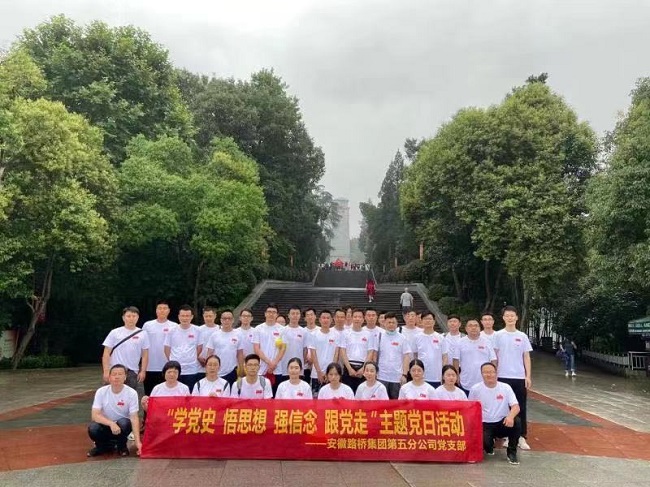 為紀念中國共產(chǎn)黨成立100周年,全面深入落實(shí)好黨史學(xué)習教育,推進(jìn)支部的組織建設,激勵全體黨員繼承和發(fā)揚黨的優(yōu)良傳統和作風(fēng),進(jìn)一步增強基層黨組織的凝聚力、號召力和戰斗力,安徽路橋集團第五分公司黨支部于6月26日到達有“紅軍的搖籃、將軍的故鄉”之稱(chēng)的金寨縣,以“學(xué)黨史 悟思想 強信念 跟黨走”為主題,瞻仰革命先烈,重溫入黨誓詞,接受革命傳統教育。五分公司全體黨員、積極分子等40余人參加此次活動(dòng)。