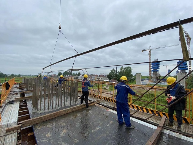 在開(kāi)工前,項目部精心組織,合理安排。相關(guān)技術(shù)人員進(jìn)行了支撐平臺的的專(zhuān)項驗收,科學(xué)布控施工組織,在原材、配合比、運輸、布料方法、澆筑速度等環(huán)節嚴格把控,安排專(zhuān)人全程監測支撐平臺。由于受場(chǎng)地地基基礎限制,施工難度較大,項目部技術(shù)人員克服困難、潛心鉆研,反復驗算推演,采用穿心棒法進(jìn)行施工。在澆筑過(guò)程中,工人協(xié)作緊密,有條不紊地進(jìn)行蓋梁澆筑作業(yè),技術(shù)人員密切關(guān)注澆筑過(guò)程中的每個(gè)細節,認真指導,及時(shí)優(yōu)化調整施工中出現的問(wèn)題。
