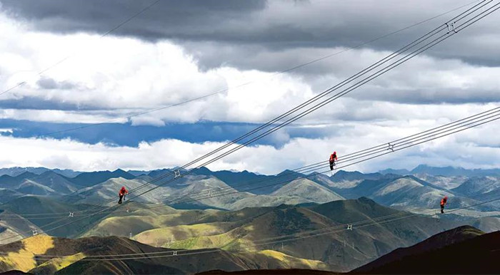 圖為2021年6月11日,國家電網(wǎng)四川送變電公司黨員先鋒隊員對四川省甘孜州兩河口水電站500千伏送出工程線(xiàn)路進(jìn)行消缺驗收。 國務(wù)院國資委供圖 劉湘釩/攝
