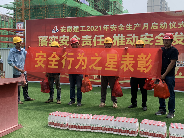 二是“保安康”。各項目部積極開(kāi)展“落實(shí)安全責任、推動(dòng)安全發(fā)展”為主題的安全生產(chǎn)月活動(dòng),提升全員的安全意識,嚴格落實(shí)每日班前晨會(huì )講話(huà)制度和安全隱患上報獎勵制度。安建·漢城源筑書(shū)香苑項目部為提升勞務(wù)人員的安全意識,每月開(kāi)展安全行為執行表彰評比,對發(fā)現和及時(shí)上報安全隱患的人員,給予鼓勵和適當的物質(zhì)獎勵,改善了項目部安全環(huán)境,保障了施工人員的生命安全。