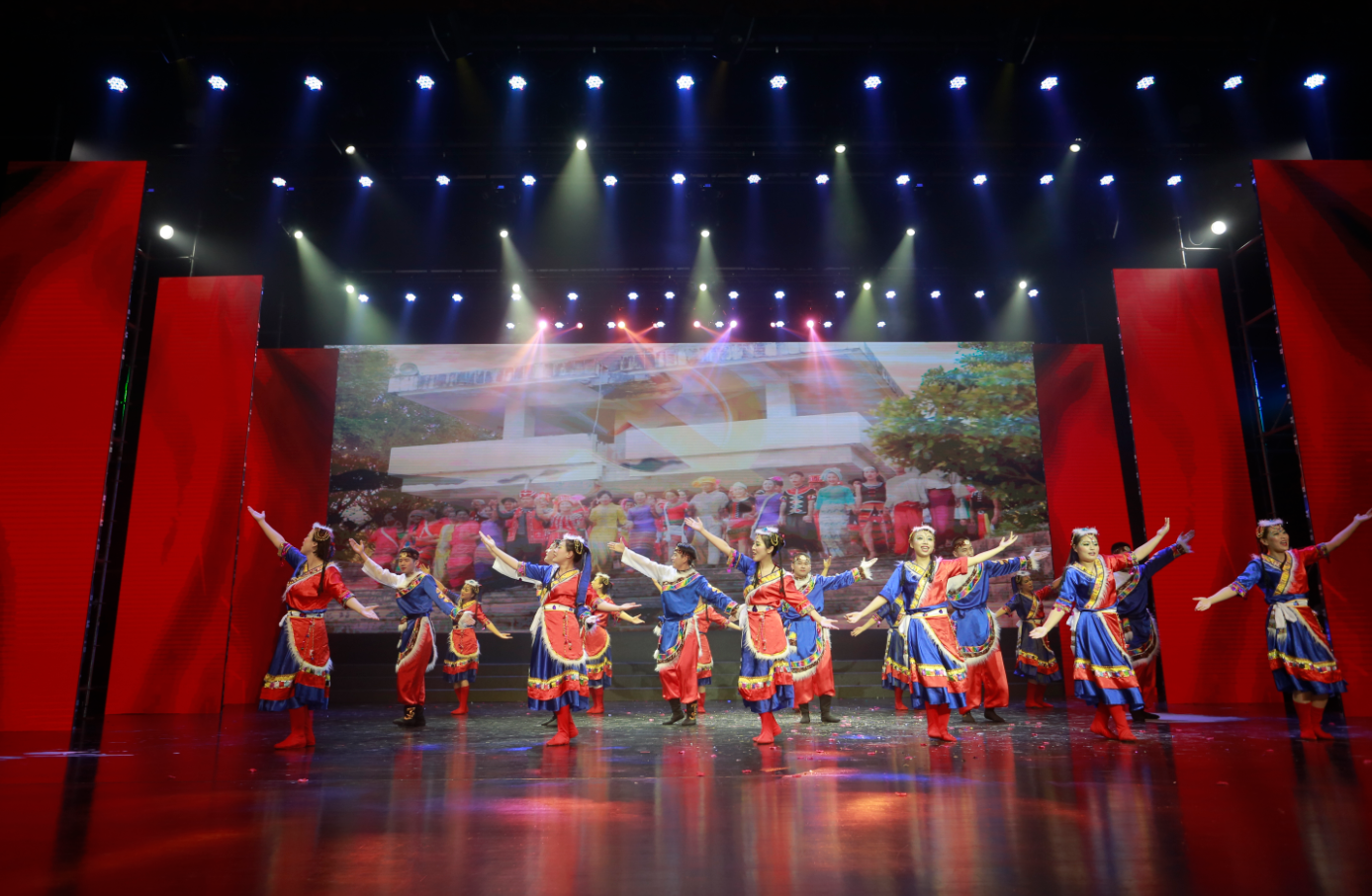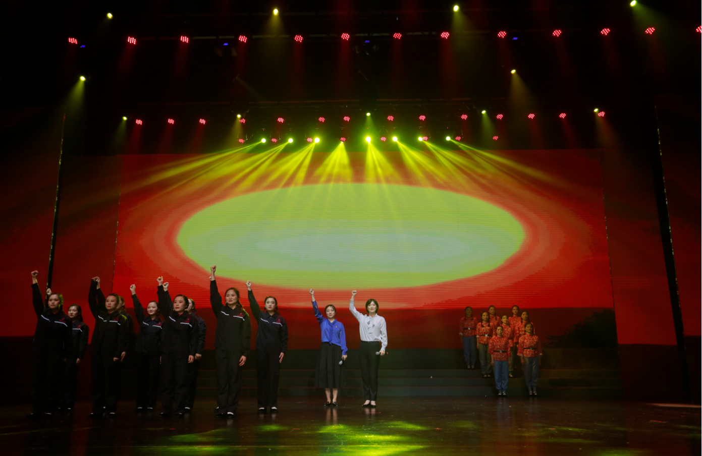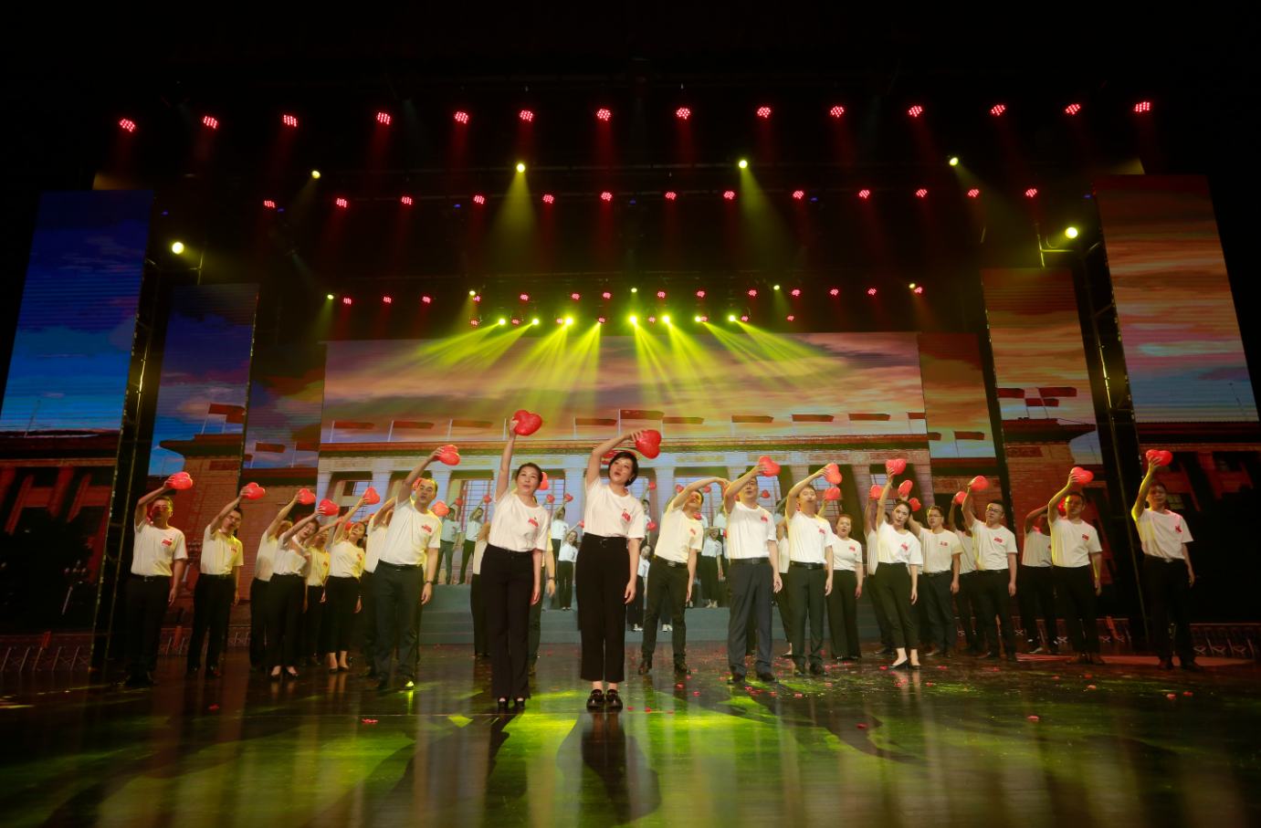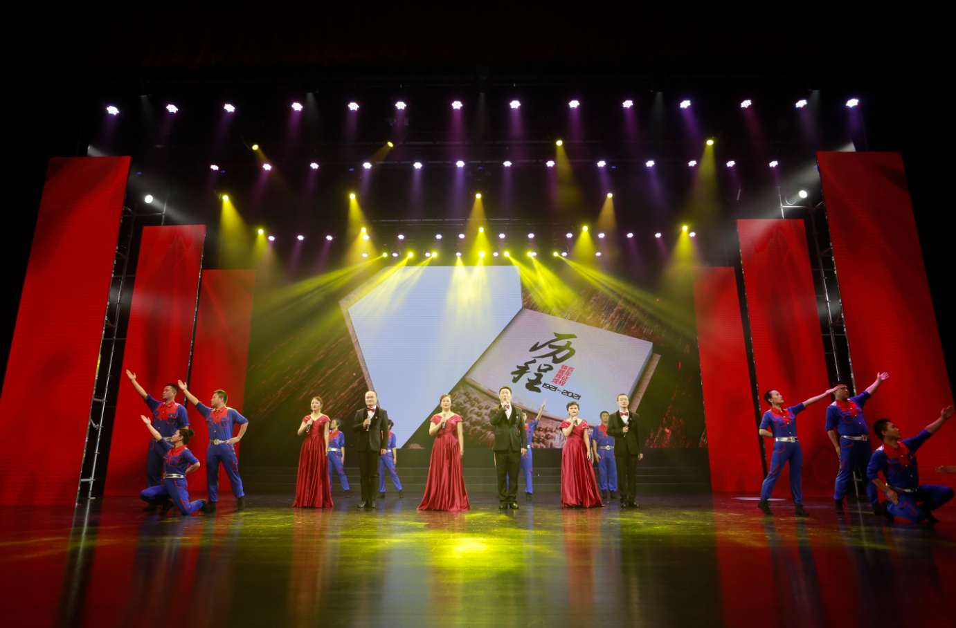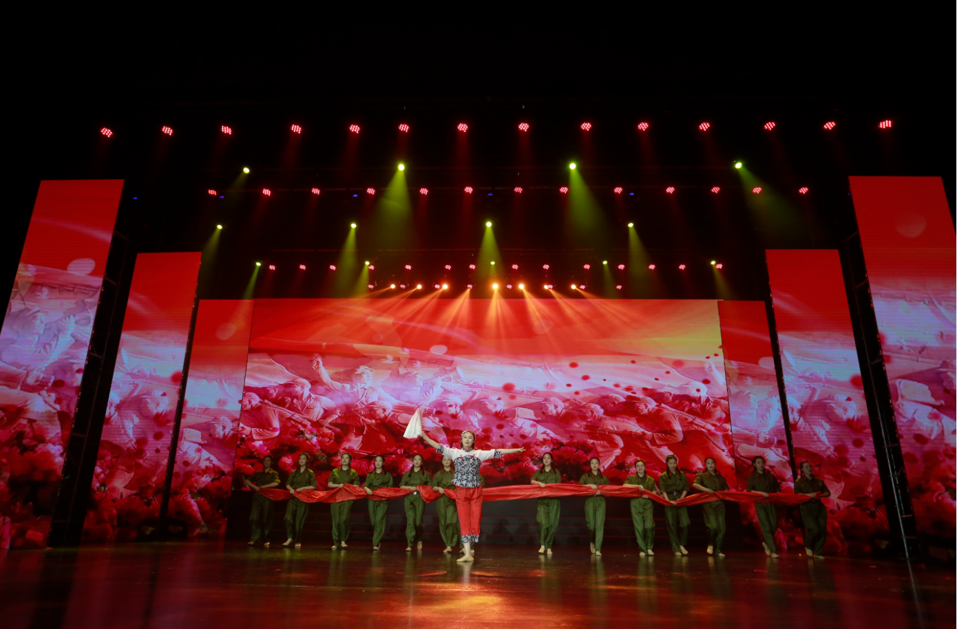 整場(chǎng)演出主題鮮明、節奏明快、催人奮進(jìn),共分為“頌歌獻給黨”“禮贊建工人”和“奮進(jìn)新征程”三個(gè)篇章,分別以父女對話(huà)、“十三五”成果視頻展播、具有代表性典型性集團優(yōu)秀黨員勞模講述先進(jìn)故事進(jìn)行開(kāi)篇。來(lái)自20家基層單位和集團機關(guān)的700余名演職人員用心用情、載歌載舞,通過(guò)情景合唱、情景朗誦、歌舞、小品、音詩(shī)畫(huà)等形式,重溫中國共產(chǎn)黨走過(guò)的波瀾壯闊的百年輝煌歷程,謳歌建黨100周年來(lái)的豐功偉績(jì),向黨的百年華誕獻禮。節目緊緊圍繞集團生產(chǎn)經(jīng)營(yíng),通過(guò)回顧整合重組整體上市、實(shí)施“投資+施工總承包”模式、推進(jìn)裝配式建筑、統籌做好疫情防控和復工復產(chǎn)等一個(gè)個(gè)鮮活事例,集中展示集團“十三五”期間取得的輝煌成就,講述建工人不忘初心、牢記使命,苦干實(shí)干推動(dòng)高質(zhì)量發(fā)展,邁向千億安徽建工新征程的奮斗故事。