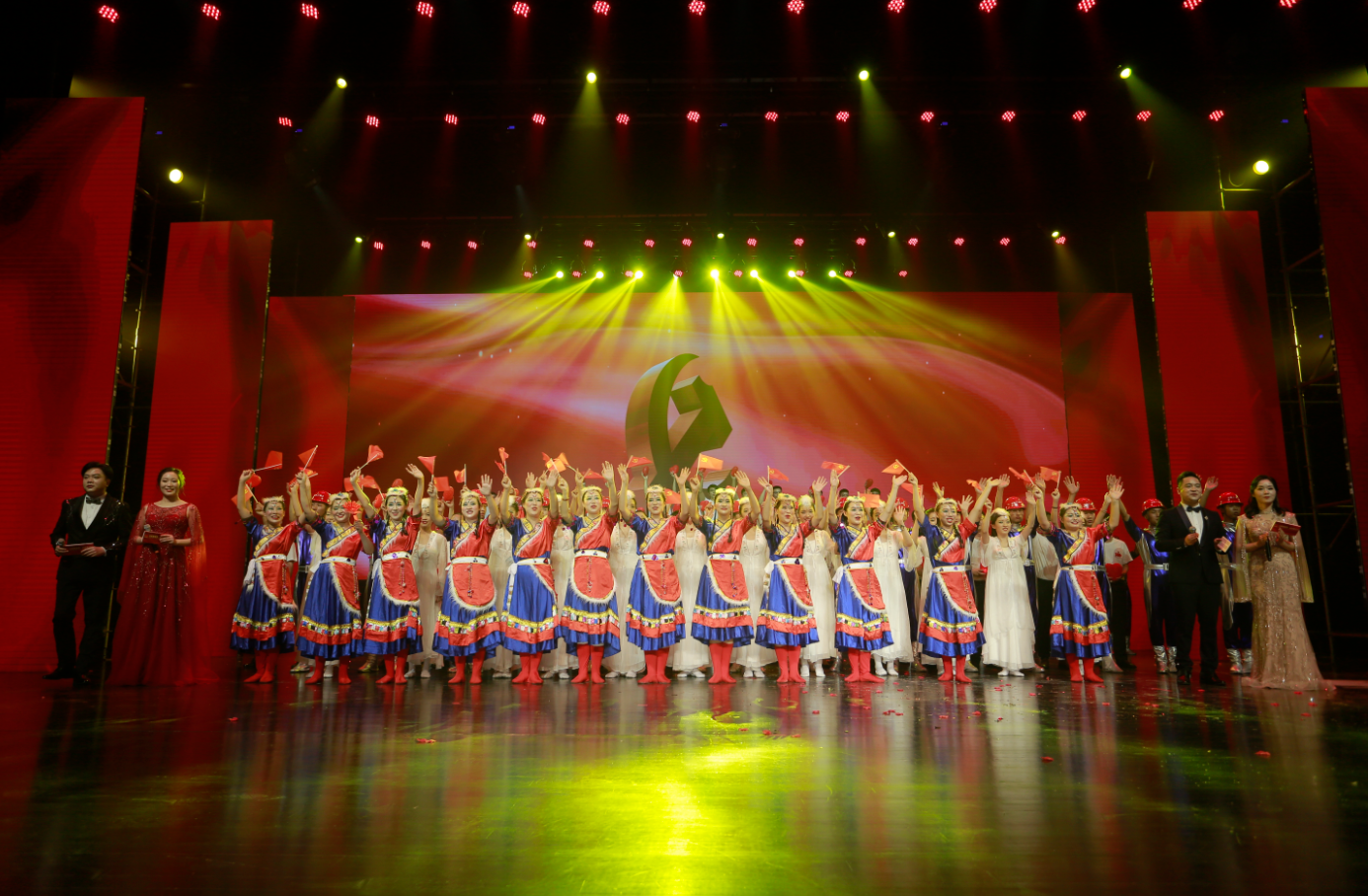 文藝匯演精彩紛呈,不時(shí)贏(yíng)得全場(chǎng)熱烈掌聲?!俺礁杞o黨聽(tīng),我把黨來(lái)比母親……”,安徽路橋氣勢恢宏的大合唱《在燦爛陽(yáng)光下 唱支山歌給黨聽(tīng)》拉開(kāi)了匯演的序幕。技師學(xué)院舞蹈《紅色搖籃》、安徽交航音詩(shī)畫(huà)《紅船頌》、安徽建科舞蹈《映山紅》、安徽路港情景表演《長(cháng)征路上》、安徽水利情景合唱《百年征程》展現了中國共產(chǎn)黨人百年接續奮斗,團結帶領(lǐng)人民開(kāi)辟偉大道路、建立偉大功業(yè)、鑄就偉大精神。在安徽交航《紅船頌》誦讀人的領(lǐng)誓下,大家重溫了入黨誓詞,場(chǎng)面莊嚴肅穆而又鼓舞人心。集團機關(guān)和安建財務(wù)大鼓說(shuō)唱《安徽建工展輝煌》、安徽安裝舞劇《穿越時(shí)空的對話(huà)》、海外事業(yè)部情景朗誦《建工人 我為你頌唱》、安徽二建情景舞蹈《眾志成城 建工力量》、路橋集團小品《婚禮現場(chǎng)》、安建投資情景劇《建工新時(shí)代 奮斗正當時(shí)》、安徽建機情景合唱《星辰大?!?、安徽路橋情景舞蹈《旗幟》再現了建工人凝聚在黨的旗幟下,和企業(yè)同呼吸、共命運。歌舞類(lèi)節目美輪美奐,安徽三建《我們迎來(lái)了好時(shí)代》、安建總承包《花開(kāi)中國》、安建地產(chǎn)《潮起江淮》、安建建材《小夢(mèng)想大夢(mèng)想》、安徽一建《再唱山歌給黨聽(tīng)》傾情演繹對黨的真摯祝福和愛(ài)黨愛(ài)國愛(ài)企的赤子情懷。集團中層代表、優(yōu)秀黨員、先進(jìn)代表及安建建材和服務(wù)中心逾70名職工共唱《不忘初心》,表達了安徽建工全體黨員干部職工不忘初心、牢記使命,在“十四五”新征程中,聽(tīng)黨話(huà)、感黨恩、跟黨走,用忠誠和實(shí)干在打造千億安徽建工、建設新階段現代化美好安徽宏偉征程中彰顯國企責任、扛起使命擔當。匯演在集團領(lǐng)導與演職人員、觀(guān)眾全體同唱《沒(méi)有共產(chǎn)黨就沒(méi)有新中國》歌聲中落下帷幕。