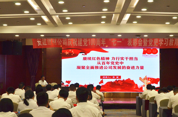 不忘初心,乘勢而上;以史為鑒、開(kāi)創(chuàng )未來(lái)。安建建材將始終牢牢把握黨史學(xué)習教育任務(wù)主線(xiàn),以習近平總書(shū)記“七一”重要講話(huà)精神為遵循,與年度工作目標任務(wù)緊密結合、深度融合,高效率抓好落實(shí),高質(zhì)量完成任務(wù),推動(dòng)各項工作不斷取得新進(jìn)展、獲得新成效,以更加優(yōu)異成績(jì)慶祝建黨100周年。