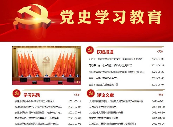 增設學(xué)習專(zhuān)欄。在公司門(mén)戶(hù)網(wǎng)站設置“黨史學(xué)習教育”板塊,動(dòng)態(tài)發(fā)布人民網(wǎng)、新華網(wǎng)等主流媒體權威報道、評論文章和公司黨史學(xué)習教育活動(dòng)有關(guān)新聞報道;公司微信公眾號堅持每日發(fā)布“黨史百年天天讀”;統籌集團年度工作會(huì )和職代會(huì )以及公司職代會(huì )精神宣貫,統一制作、在辦公區域和所屬項目駐地擺放宣傳展板,懸掛宣傳橫幅;開(kāi)展“節日里的黨史教育”,發(fā)布“致敬堅守崗位的勞動(dòng)者”等專(zhuān)題報道,轉載發(fā)布“以青春的名義、犒賞每一顆奮斗的中國心”,開(kāi)展青工思想問(wèn)卷調查活動(dòng),引導廣大黨員和青年職工傳承紅色基因,用愛(ài)崗敬業(yè)譜寫(xiě)奮斗贊歌。