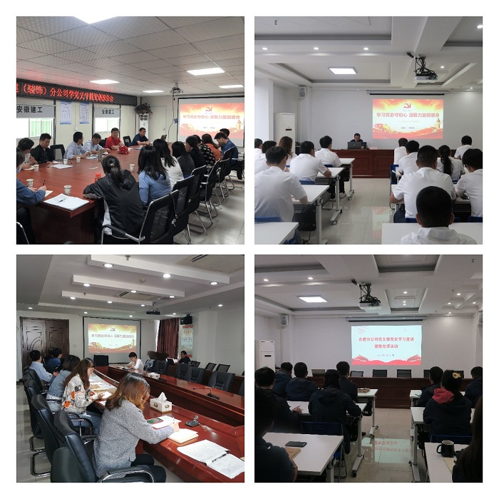5月8日,公司黨委在阜陽(yáng)潁東中醫院建設PPP項目舉辦安徽安裝公司黨委理論學(xué)習中心組(擴大)學(xué)習會(huì )暨中層管理人員培訓黨史學(xué)習教育專(zhuān)題黨課報告會(huì )。公司黨委書(shū)記、董事長(cháng)胡六中作了題為《學(xué)黨史牢記初心 辦實(shí)事踐行使命》的黨課報告,公司中層管理人員及機關(guān)全體員工等共90余人參加;7月5日,公司黨委召開(kāi)慶祝建黨100周年黨課報告暨表彰大會(huì ),公司黨委書(shū)記、董事長(cháng)作了題為《風(fēng)雨輝煌百年路 高歌奮進(jìn)新征程》的黨課報告,公司中層管理人員及黨員干部職工等共90余人參加。
