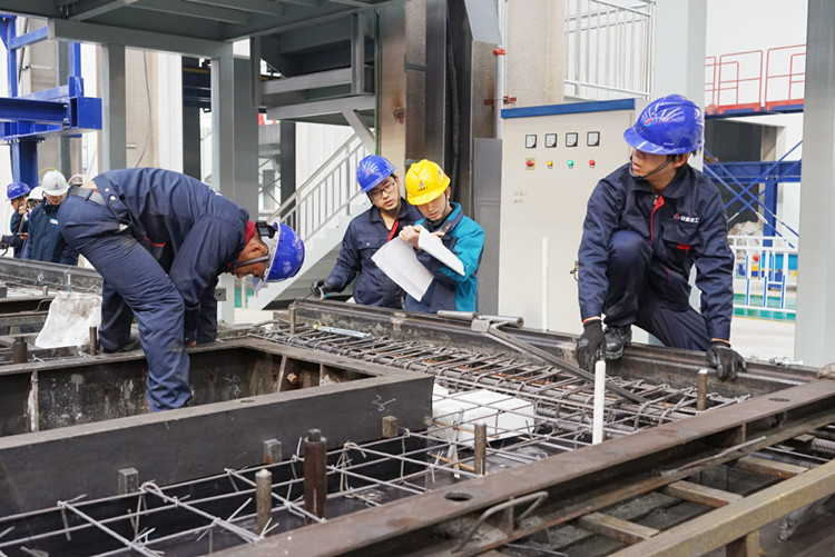 為了抓好管片生產(chǎn),北城工業(yè)公司建設初期,就充分考慮了裝配式市政部品部件發(fā)展趨勢,提出管片建設規劃方案,打造出全市首條智能化管片流水線(xiàn)。該線(xiàn)主要采用2+5生產(chǎn)模式,全線(xiàn)配有管片振搗隔音室、管片鋼筋自動(dòng)彎弧機械等配套設備;配置有鋼筋智能生產(chǎn)線(xiàn)、蒸汽智能養護系統、混凝土攪拌站全封閉、全自動(dòng)、環(huán)保型控制系統;可同時(shí)容納15套模具生產(chǎn),最大管片生產(chǎn)直徑7米。邀請具有生產(chǎn)管片經(jīng)驗專(zhuān)業(yè)人員,共同開(kāi)展技術(shù)研討工作,改進(jìn)管片生產(chǎn)技術(shù)工藝,為拓展軌道交通工程業(yè)務(wù)領(lǐng)域提供堅實(shí)基礎。