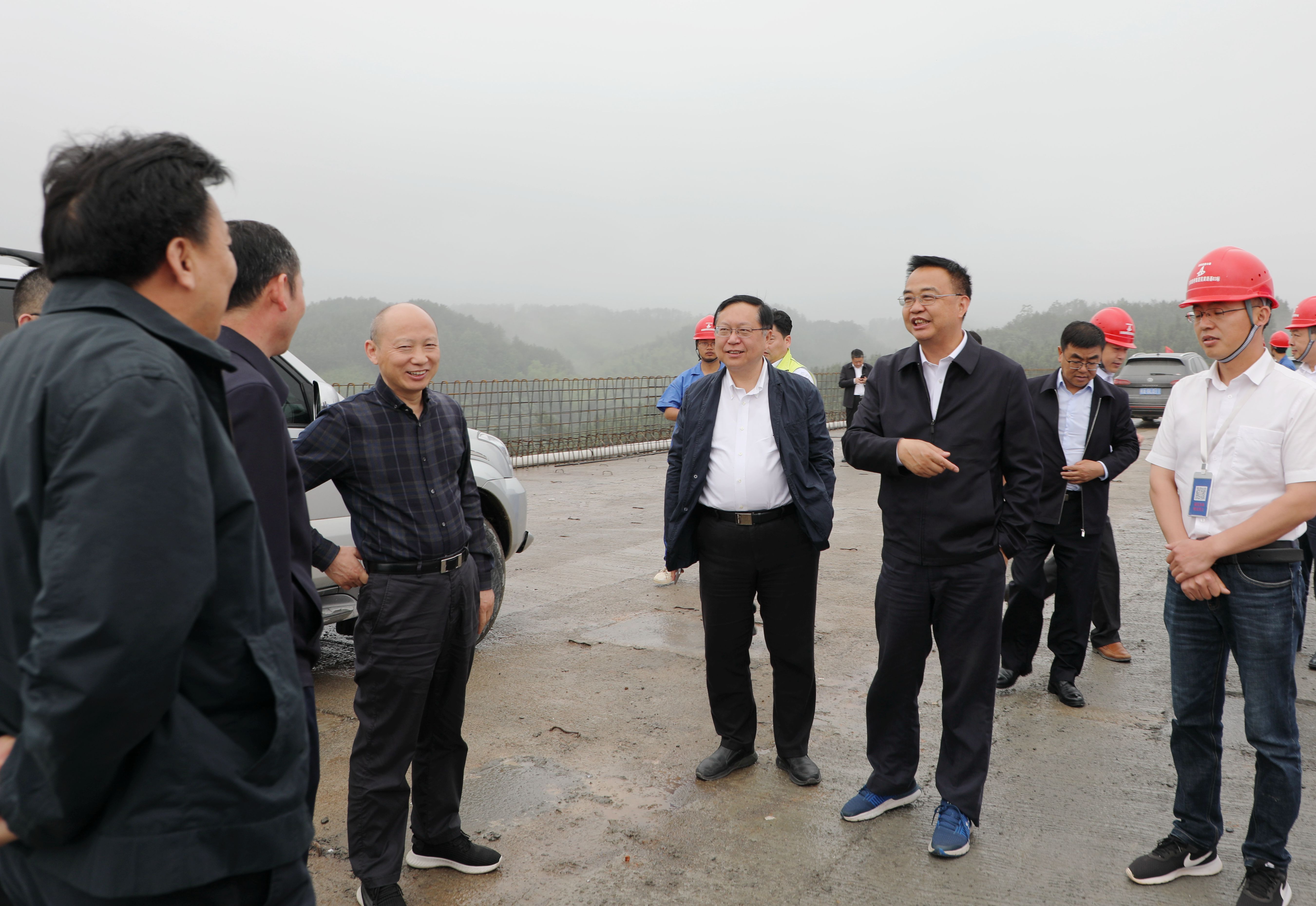 5月12日,安徽交控集團黨委書(shū)記、董事長(cháng)項小龍,安徽建工控股黨委書(shū)記、董事長(cháng)趙時(shí)運冒雨前往蕪黃高速項目實(shí)地調研“縣縣通高速”項目進(jìn)展,并出席現場(chǎng)生產(chǎn)調度會(huì )。安徽交控集團黨委副書(shū)記、總經(jīng)理錢(qián)東升,安徽建工控股黨委委員、紀委書(shū)記王汪苗陪同調研。