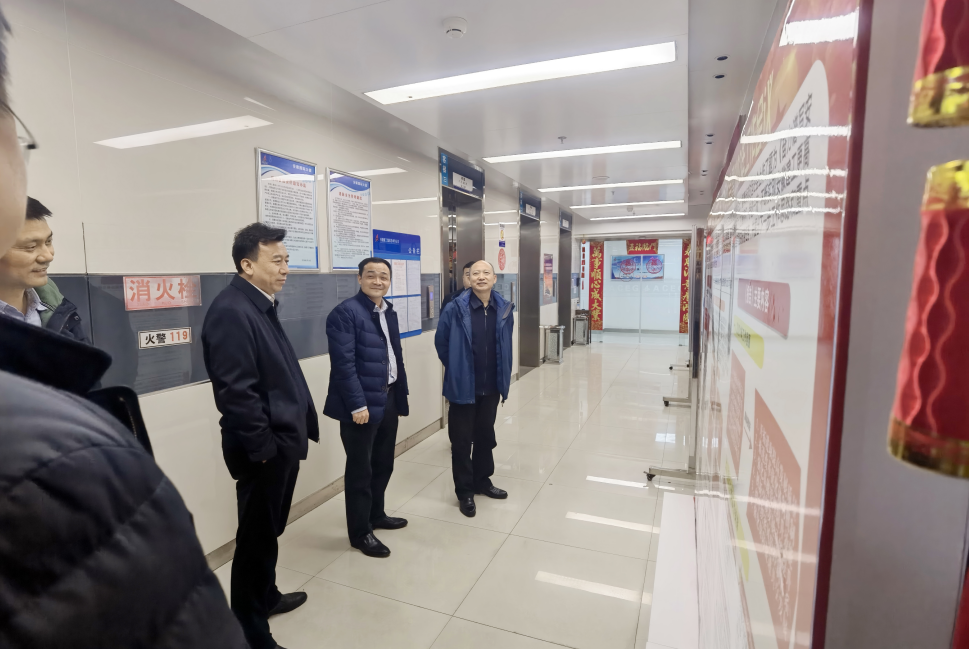 趙時(shí)運一行來(lái)到安建總承包機關(guān)各中心,與堅守崗位的干群親切交談,詳細了解農民工工資支付、疫情防控、信訪(fǎng)維穩、節日值班等情況,聽(tīng)取公司黨委書(shū)記、總經(jīng)理張沖相關(guān)工作匯報。他來(lái)到宣傳展板前駐足觀(guān)看,對公司迅速反應及時(shí)有效宣貫黨的十九屆六中全會(huì )、省第十一次黨代會(huì )以及集團二屆二次職代會(huì )暨2022年工作會(huì )議精神予以高度贊賞。