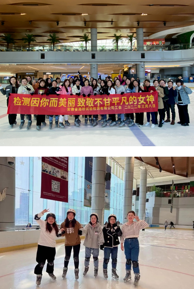 檢測公司組織母體全體女職工在合肥萬(wàn)象城開(kāi)展“檢測因你而美麗,致敬不甘平凡的女神”滑冰主題活動(dòng)。女職工們從一開(kāi)始的手扶圍欄、蹣跚滑稽的冰上行走,逐漸提高到進(jìn)階技巧的緩緩滑行,大家在教練悉心的講解示范中逐步體會(huì )到滑冰的動(dòng)作要領(lǐng),感受冰上運動(dòng)帶來(lái)的歡樂(lè )。
