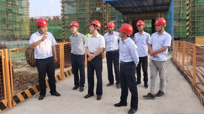 王厚良一行實(shí)地查看施工現場(chǎng)和國慶期間即將交付使用的展示區域樣板房建設,詳細了解項目進(jìn)展、工期要求、施工重難點(diǎn)等,他對項目管理總體情況、特別是復工復產(chǎn)以來(lái)一線(xiàn)黨員職工大干快上搶工超產(chǎn)給予充分肯定。