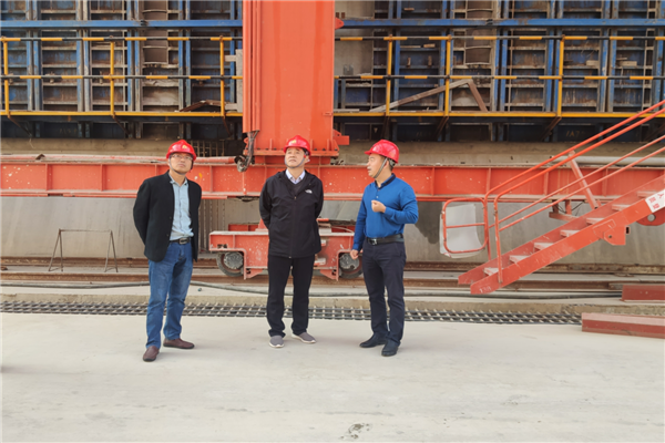 戴良軍一行深入施工現場(chǎng)實(shí)地查看項目進(jìn)度、技術(shù)、質(zhì)量、安全管理情況,詳細了解工程質(zhì)量控制措施、施工工藝創(chuàng )新等情況并仔細詢(xún)問(wèn)了相關(guān)技術(shù)細節。在聽(tīng)取項目相關(guān)介紹后,戴良軍對靈璧船閘項目當前各項工作給予高度肯定,并結合項目實(shí)際,在施工重大裝備升級改造、高空作業(yè)防護、混凝土表面鑿毛技術(shù)、工藝優(yōu)化創(chuàng )新等方面提出指導建議。