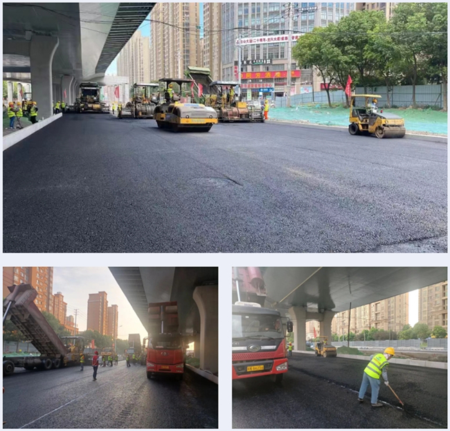 施工人員頂著(zhù)瀝青路面蒸騰滾燙的熱氣,各司其職,相互配合,嚴格控制瀝青溫度、松鋪厚度、碾壓遍數、寬度、坡度等施工參數。各項工序緊密銜接,忙而不亂,嚴格按規范要求進(jìn)行施工。經(jīng)現場(chǎng)檢測和試驗室取樣檢測,試驗路段的平整度、厚度、壓實(shí)度等各項指標均符合規范和設計要求,達到了試驗段的預期目的,標志著(zhù)包公大道03標項目施工進(jìn)入了全新階段。