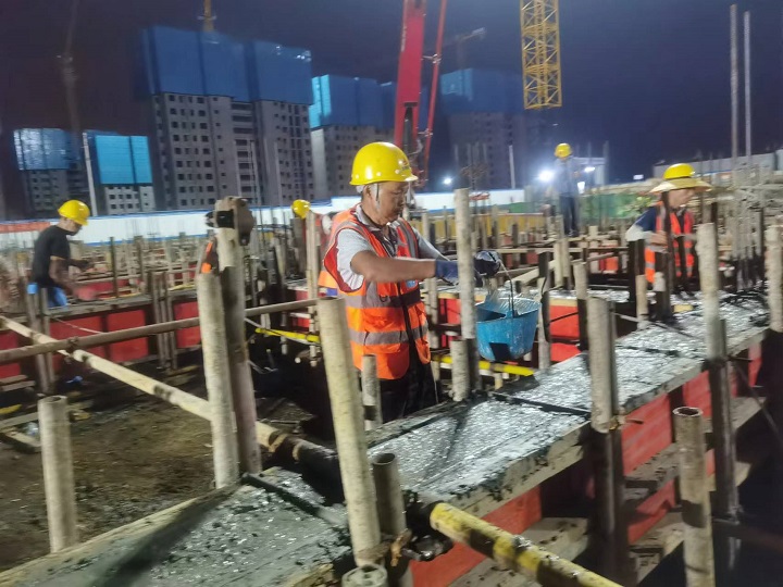 受疫情影響,原計劃4月開(kāi)工的引江濟淮B地塊項目至6月8日才正式開(kāi)工,項目以“開(kāi)工即決戰,起步即沖刺”的決心,在高溫態(tài)勢下接受烈日“烤”驗,從上到下形成合力保安全、抓質(zhì)量、搶工期、降成本。項目部根據年度目標,倒排工期計劃,結合現階段施工特點(diǎn)提出人停機不停策略,人員兩班倒、機械24小時(shí)不停機,各項工作緊鑼密鼓、有條不紊地進(jìn)行著(zhù)。面對高溫天氣項目部合理安排工作時(shí)間,避開(kāi)高溫時(shí)段,管理人員與工人一起晨曦初露而出,披星戴月而歸,在高溫、多雨的情況下,項目部提前完成了部分樓棟進(jìn)度(其中BS1#樓提前了5天,BS3#、BS2#、BS5#樓均提前了3天),累計完成產(chǎn)值1073萬(wàn)元(業(yè)主已確認),完成計劃產(chǎn)值的121%,為接下來(lái)的項目工作的開(kāi)展打下了良好的基礎。