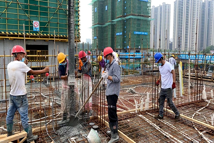 截至目前10#樓已封頂,7#、8#、9#、11#樓正在緊張有序的進(jìn)行施工中,7#樓施工到十七層、8#樓施工到七層、9#樓施工到一層、11#樓施工到一層,累計完成甲方確認產(chǎn)值2438萬(wàn)元。九月中旬,完成7#樓施工至二十二層、8#樓施工至十二層、9#樓施工至六層、11#樓施工至六層、8#樓地下車(chē)庫及9#樓地下車(chē)庫結構混凝土澆筑任務(wù)。