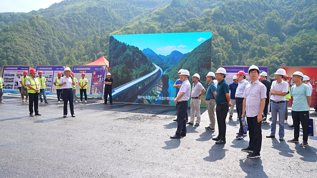 觀(guān)摩期間,安徽路橋集團黃千02標項目負責人匯報了項目概況及裝配式懸挑路基結構的施工工藝技術(shù),現場(chǎng)動(dòng)畫(huà)展示了項目建設動(dòng)態(tài)過(guò)程。黃千項目辦主任于斌在發(fā)言中指出,02標橋隧比達94%,是目前省內高速公路項目中橋隧比最高、施工難度最大的項目。安徽路橋集團成功克服技術(shù)難關(guān)及工期壓力,在保證質(zhì)量安全有序可控下,高效推進(jìn)項目建設進(jìn)度,取得第一個(gè)完成梁板預制、第一個(gè)完成隧道貫通、第一個(gè)完成梁板安裝、第一個(gè)完成全幅貫通的驕人成績(jì),充分展現出省屬?lài)衅髽I(yè)擔當與風(fēng)范。