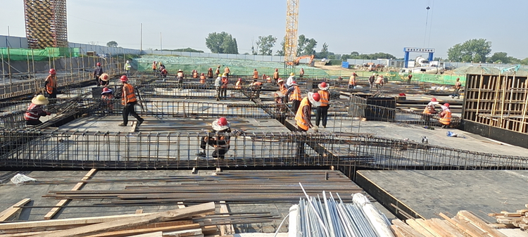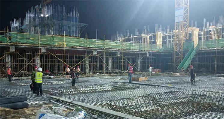 入夏以來(lái),合肥市持續高溫給現場(chǎng)施工增添了很大難度,在保障現場(chǎng)施工不停滯的同時(shí)做好工人的身體健康管理,項目立即調整現場(chǎng)作業(yè)時(shí)間,“休中間,戰兩邊”。晨光熹微,工人同志已經(jīng)熱火朝天地進(jìn)行現場(chǎng)建設;晚霞滿(mǎn)天,工人同志又開(kāi)始晚間時(shí)段的搶工建設。為確保八地塊1#樓人防底板鋼筋順利通過(guò)驗收,棟號長(cháng)組織班組每天施工到深夜,為勞務(wù)工人提供水和泡面,人性化的服務(wù)充分調動(dòng)工人的積極性,最終,人防驗收按時(shí)完成,順利通過(guò)驗收,施工質(zhì)量還得到了人防站的認可。