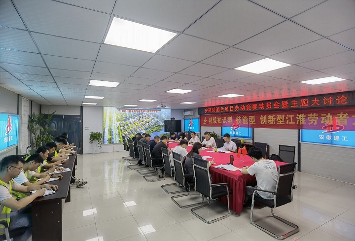 為充分調動(dòng)廣大員工主動(dòng)性和積極性,進(jìn)一步激發(fā)參賽熱情,加快推動(dòng)安建岳湖臺項目快速達產(chǎn)、超產(chǎn),完成既定目標。8月18日上午,安徽一建公司在安建岳湖臺項目部召開(kāi)勞動(dòng)競賽動(dòng)員會(huì )暨主題大討論;公司黨委副書(shū)記、工會(huì )主席李寬旭,副總經(jīng)理代鵬飛,公司相關(guān)部門(mén)負責人、阜陽(yáng)市公司領(lǐng)導班子成員和項目部全體管理人員30多人參加了會(huì )議。