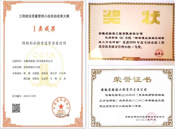 創(chuàng )新技術(shù)已獲國家發(fā)明專(zhuān)利3項、實(shí)用新型專(zhuān)利16項、省部級工法7項、國家級QC成果4項,安徽省科學(xué)進(jìn)步獎2項、安徽省土木創(chuàng )新獎1項,用科研成果為項目推進(jìn)保駕護航。