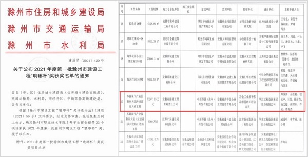 此前本工程已獲其他獎項包括滁州市瑯琊杯、安徽省安全生產(chǎn)標準化示范工地、園區市政工程優(yōu)秀企業(yè)獎等,“黃山杯”的獲選實(shí)至名歸。