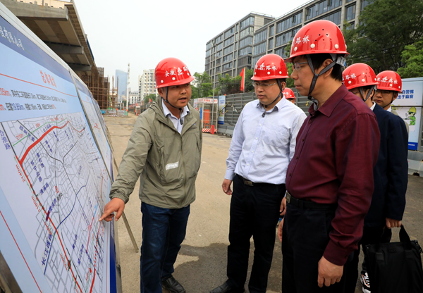 在施工現場(chǎng),王厚良對項目工程概況、建設進(jìn)度、管理目標、施工難點(diǎn)、技術(shù)工藝、安全文明施工等進(jìn)行了詳細了解,高度肯定了項目“一令、二狀、三管控”“策劃先行 智慧協(xié)同”的管理思路。