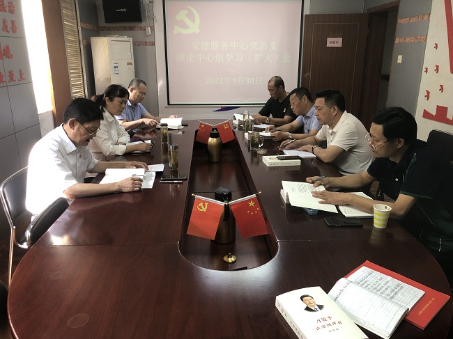 9月30日,安建服務(wù)中心有限公司黨總支召開(kāi)理論學(xué)習中心組學(xué)習(擴大)會(huì )議,公司領(lǐng)導班子成員,機關(guān)各部門(mén)負責人、黨支部書(shū)記參加會(huì )議。黨總支書(shū)記、總經(jīng)理施愛(ài)民主持會(huì )議。