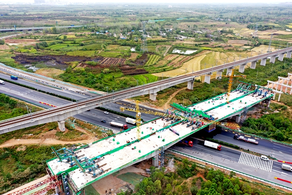 國慶期間,項目負責人每天檢查項目施工進(jìn)度、安全管理情況和實(shí)體工程質(zhì)量,各工區負責人施工現場(chǎng)協(xié)助指導?,F場(chǎng)20余臺大型機械設備連續施工,100余名參建者晝夜奮戰,順利完成滬陜主橋右幅中跨合龍。