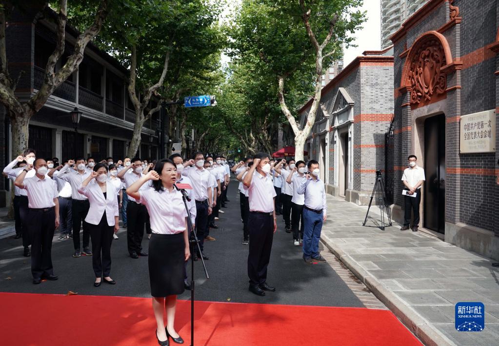 上海市新黨員代表入黨宣誓活動(dòng)在中共一大會(huì )址前舉行(2022年7月1日攝)。新華社記者 劉穎 攝