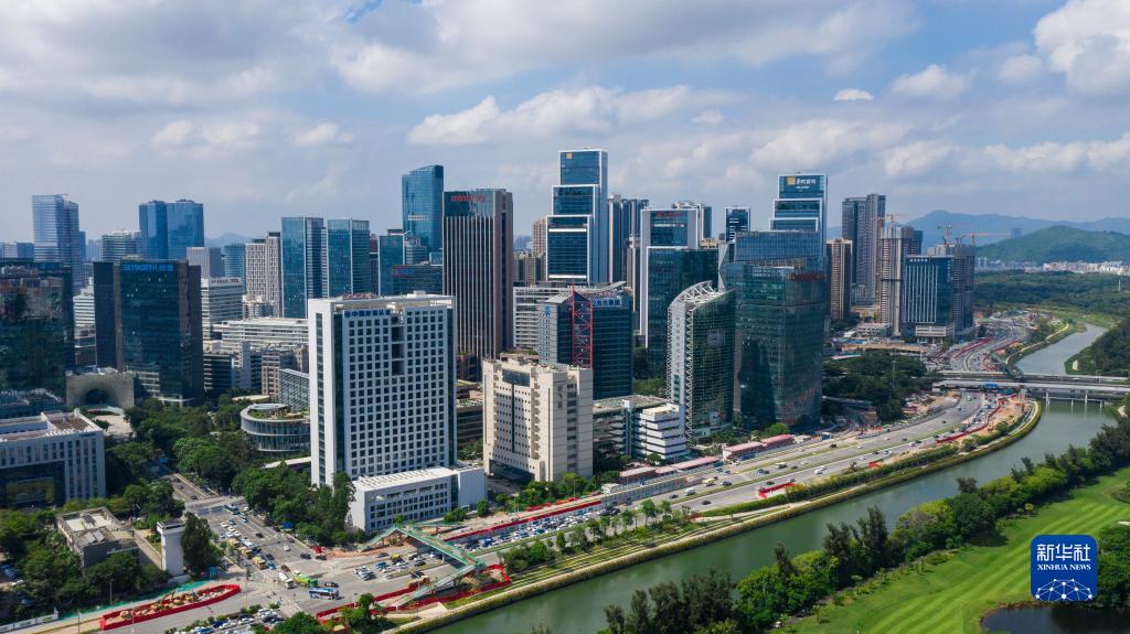 深圳市南山區大沙河畔的科技園(2020年9月27日攝,無(wú)人機照片)。新華社記者 毛思倩 攝