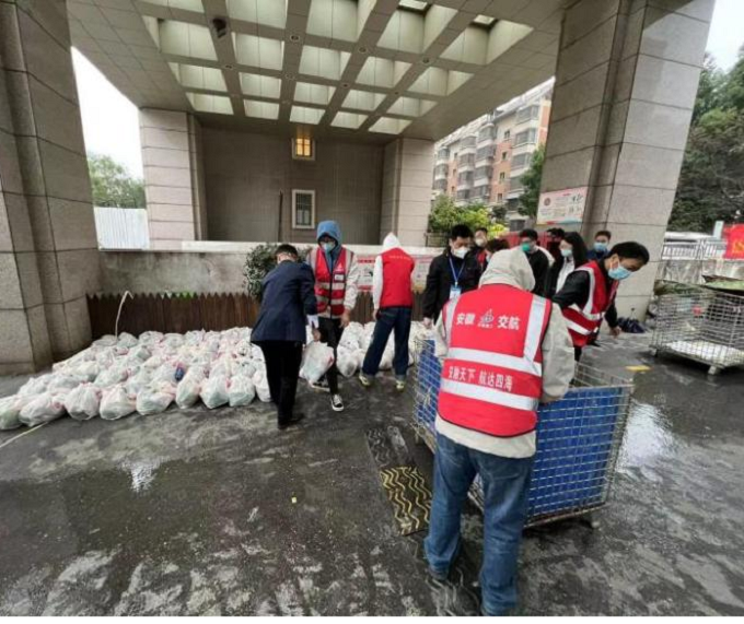 10月26日下午15時(shí),項目部接到嘉山路街道工作人員電話(huà),轄區內美晨雅閣小區急需人員、車(chē)輛協(xié)助發(fā)放居民生活物資。項目部第一時(shí)間組織青年志愿者前往該小區提供志愿服務(wù),志愿者們與社區工作人員密切配合,一邊緊張有序地裝卸物資,逐個(gè)樓棟進(jìn)行發(fā)放,一邊耐心地安撫居民情緒,維持現場(chǎng)秩序,直至晚上21時(shí),順利完成小區一千多戶(hù)居民生活物資的發(fā)放,切實(shí)保障了群眾的正常生活。