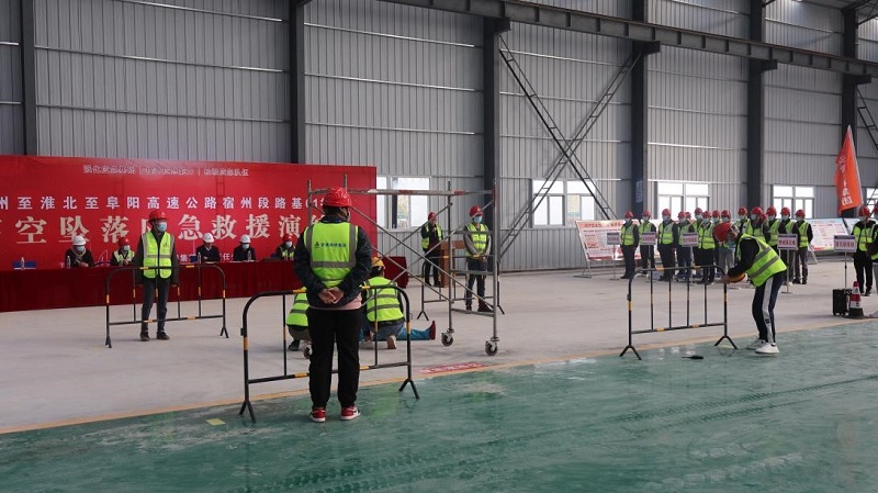 為提高安全事故應急救援能力,抓好項目安全生產(chǎn)工作,11月25日,安建投資徐淮阜高速宿州段項目在路基01標段施工現場(chǎng)開(kāi)展高空墜落應急救援演練。