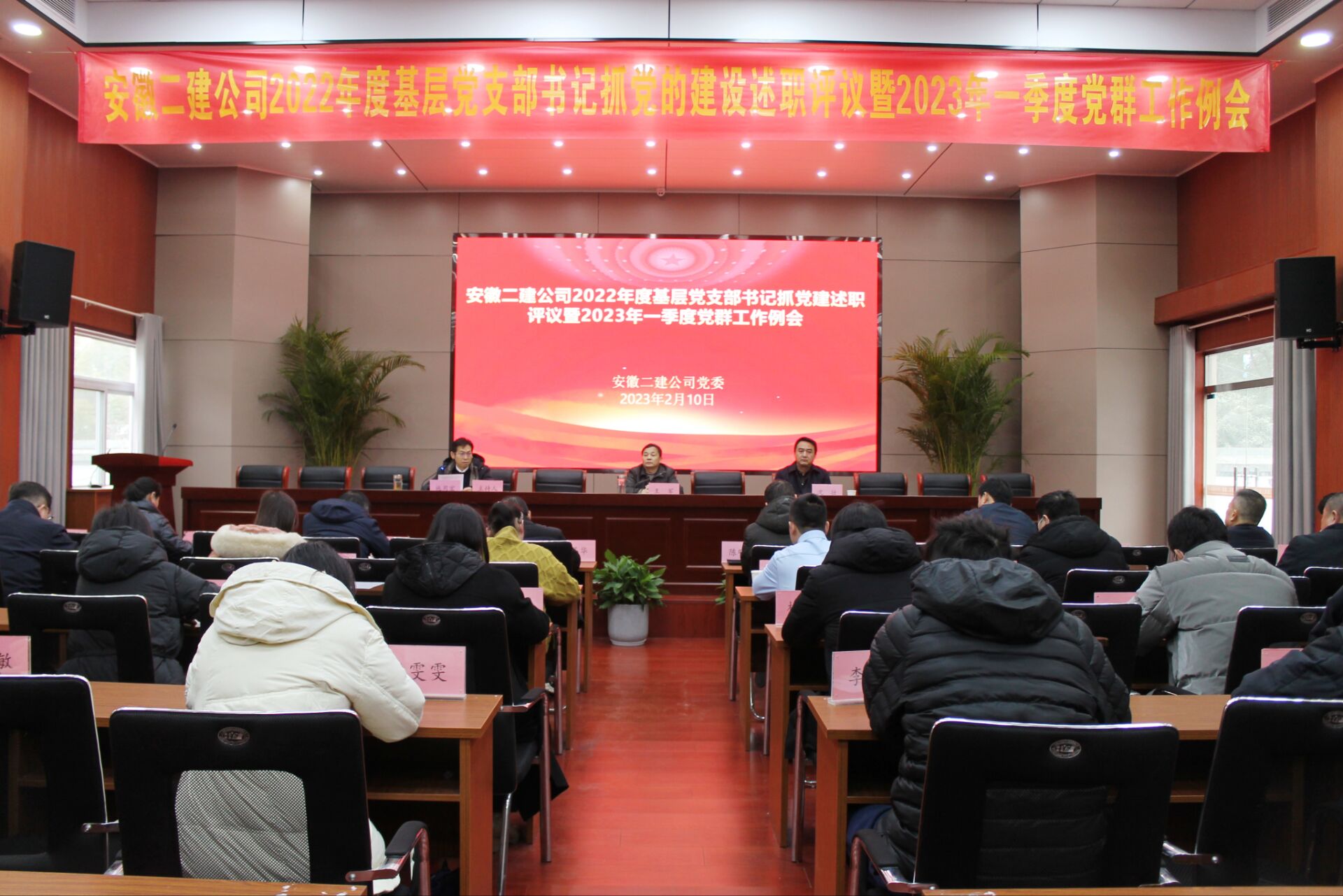 2月10日下午,安徽二建公司在新會(huì )議室召開(kāi)2022年度基層黨支部書(shū)記抓黨的建設述職評議暨2023年一季度黨群工作例會(huì )。黨委副書(shū)記、工會(huì )主席王軍,黨委委員、紀委書(shū)記沈壯出席會(huì )議,黨委工作部主任施用宏主持會(huì )議。
