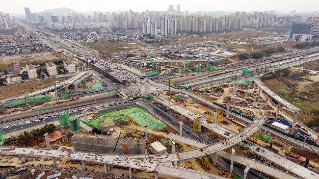 據悉,合肥市長(cháng)江西路與方興大道互通立交橋是G312合六路快改的重要節點(diǎn)工程,作為連通合肥與六安的交通要道,該標段(南崗鎮-侯店路)工程全長(cháng)2.45公里,其中主線(xiàn)高架橋梁起點(diǎn)位于火龍地路以西,向東依次上跨火龍地路、方興大道后落地,工程范圍包含合六路主線(xiàn)高架橋梁(左、右分幅設置)及8條匝道橋梁。