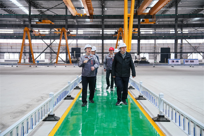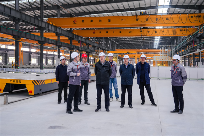 任杰一行先后查看了科研辦公樓、職工中心、宿舍樓裝修情況,并走進(jìn)鋼結構重鋼廠(chǎng)房,詳細了解了鋼結構生產(chǎn)制造過(guò)程、智能設備、先進(jìn)流水線(xiàn)、特殊工藝等。