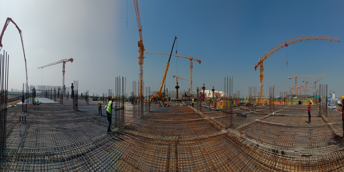 大干快上沖出首季“開(kāi)門(mén)紅”。2023 年一季度,項目建設如火如荼。項目現場(chǎng)60余臺塔吊、汽車(chē)吊等機械設備保障生產(chǎn),近700名一線(xiàn)管理人員和勞務(wù)工人高效完成8800余噸鋼筋綁扎、6萬(wàn)余方混凝土澆筑、15萬(wàn)余方架體搭設、96根鋼柱吊裝等施工內容,項目±0以下結構工程量完成90%,一層鋼柱吊裝完成65%,累計完成產(chǎn)值1.8億元,占年度計劃36%,沖出首季“開(kāi)門(mén)紅”。