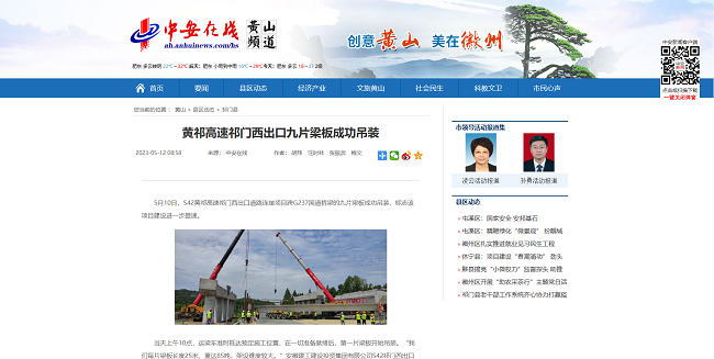 近日,S42黃祁高速祁門(mén)西出口道路連接項目首跨箱梁施工作業(yè)順利完成吊裝!祁門(mén)縣政府官網(wǎng)、《黃山日報》、中安在線(xiàn)黃山頻道、祁門(mén)縣融媒體中心官方公眾號微祁門(mén)等多家當地主流媒體進(jìn)行專(zhuān)題報道。